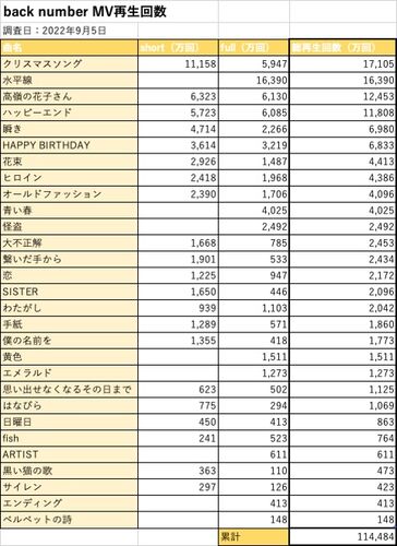 私の好きなアーティストのYouTubeの再生回数を、楽曲ごとに集計、掲載しています。なお、再生回数は手動で調査しています。 一定期間を経過後、随時更新予定です。掲載しているデータがいつの時点のものであるかは、各表の調査日欄を参照してください。 あく…